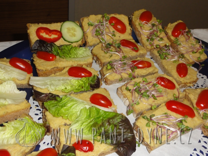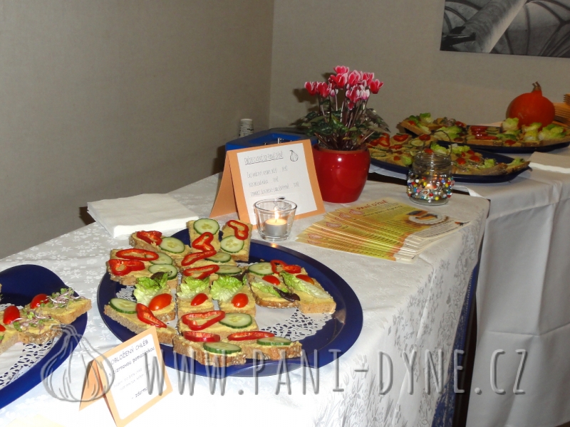 Na konferenci Excellentní žena jsem zajišťovala občerstvení ve formě lehké ranní snídaně. Na žádost pořadatelky paní Anny Šperlové jsme zvolili tentokrát slanou variantu - obložené žitné chleby s domácí luštěninovou pomazánkou, ozdobené zeleninou. Ženy si pochutnaly a většinou se dotazovaly na recept na pomazánku, která pro ně byla úplnou novinkou.