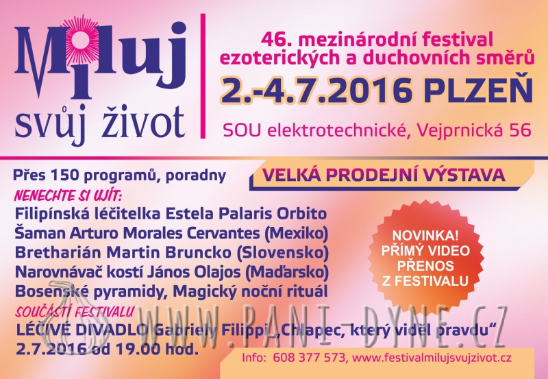 Třídenní festival ezoterických a duchovních směrů Miluj svůj život, který již tradičně probíhá během prvního prázdninového víkendu. Základ celé akce tvoří zajímavé přednášky, intenzivní pracovní dílny, koncerty, besedy, cvičení a mnoho dalších programů z oblasti zdravého životního stylu a ezoteriky.