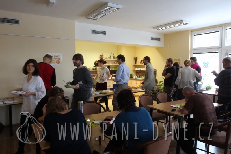 Já jsem měla tu skvělou možnost zajistit pro všechny zůčastněné občerstvení včetně veganského oběda. Podávali jsme bramboračku a basmati rýži s cizrnou a zeleninou v italské omáčce. Ke koupi byly i placky, karbanátky, sladké koláče a samozřejmě i pralinky.
